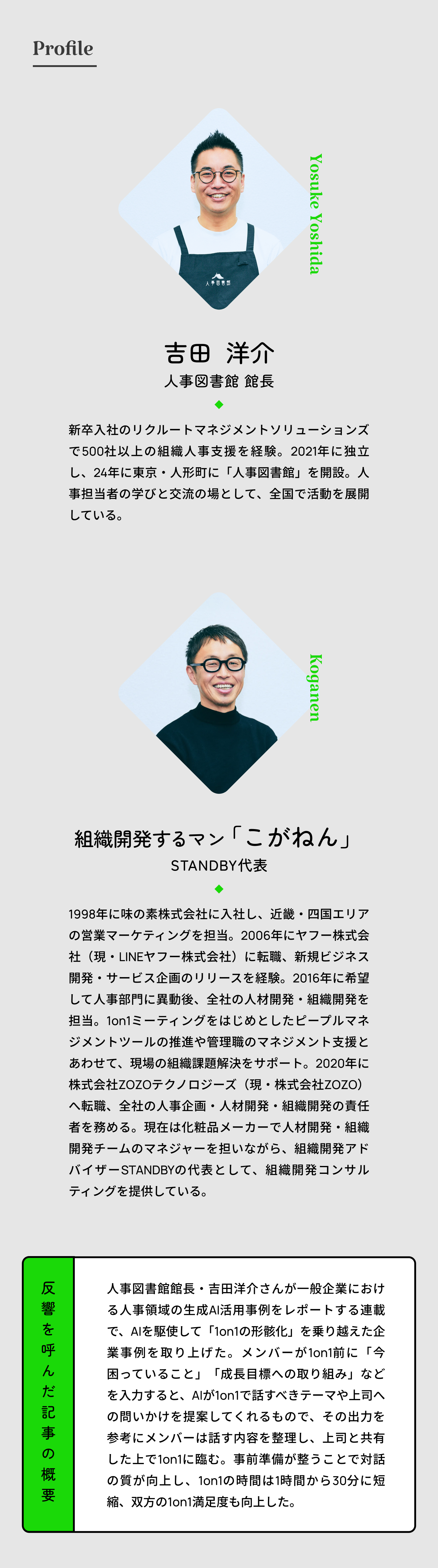 前編では、両者の1on1原体験、形骸化のパターン、こがねんさんが覚えた「違和感」の正体に迫りました。