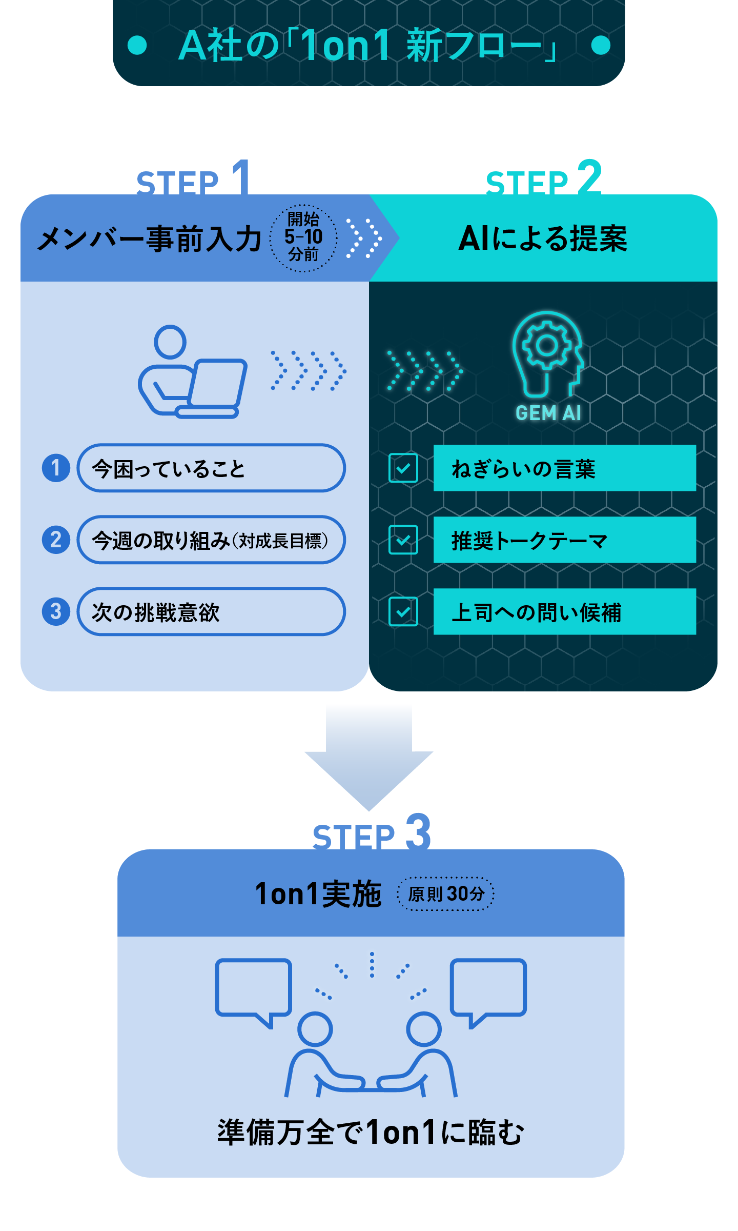 A社が再設計した新しい1on1の流れは、次のようなものです。