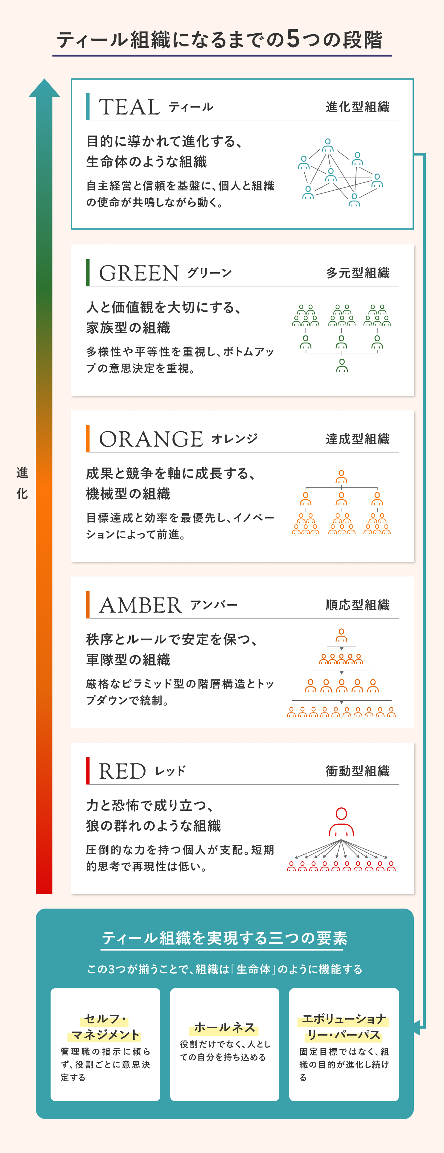 「ティール組織」(リーダーシップの指示に依存せず、従業員が自律的に意思決定を行い、組織の目的達成のために働く組織モデル)をはじめ、海外では新しい組織の形が存在しているという認識は広まってきましたが、日本企業で実現することには懐疑的な思いを持っている人も多いのではないかと思います。