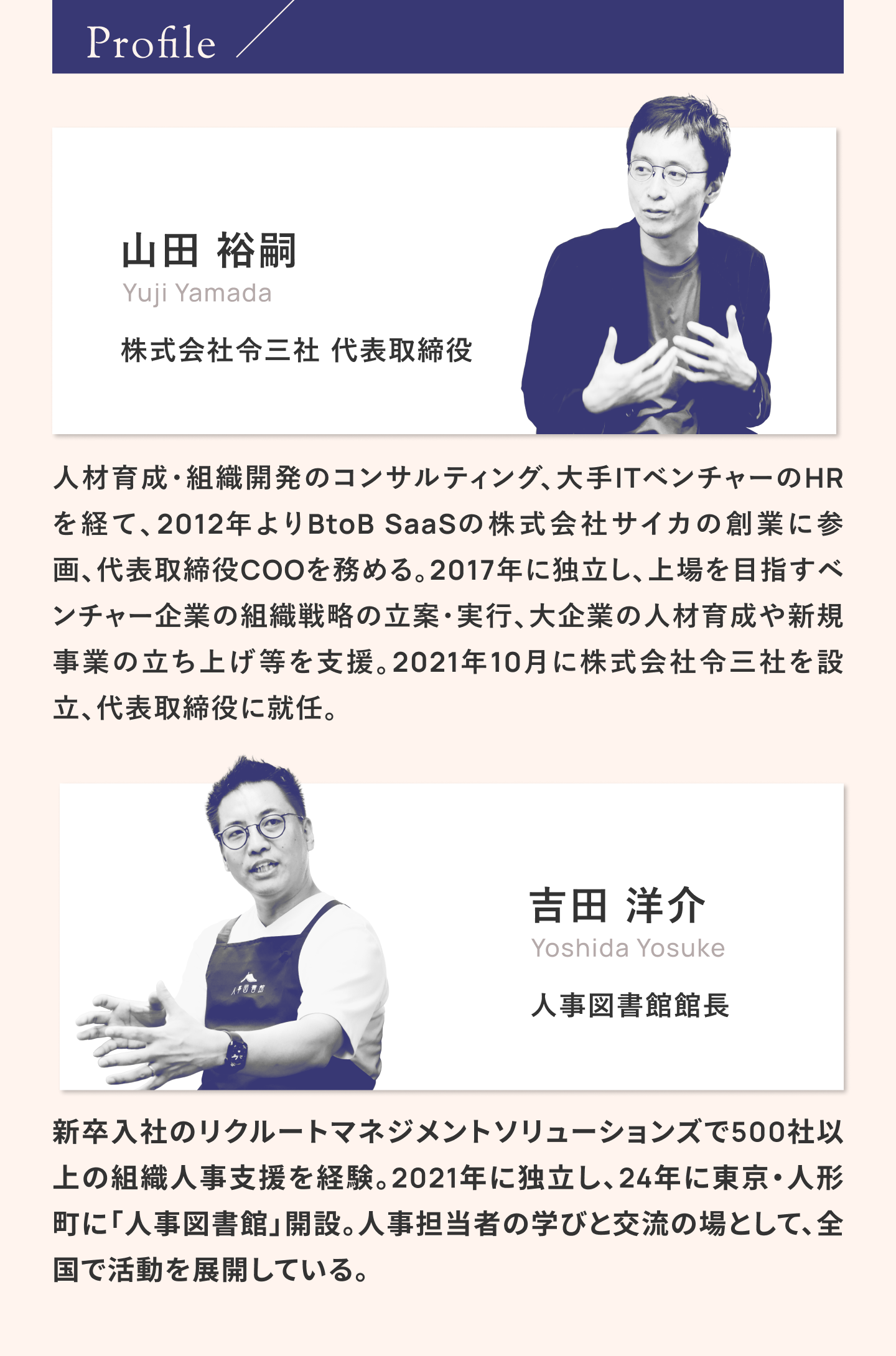 「ティール組織」や自律分散型など、新しい組織論は数多く語られてきた。にもかかわらず、日本企業の現場から閉塞感が消えないのはなぜなのか。ティール組織・自己組織化など組織戦略に詳しい株式会社令三社 代表取締役の山田裕嗣氏と、人事図書館館長の吉田洋介氏が、日本企業に根づく「組織の息苦しさ」の正体を掘り下げる。
